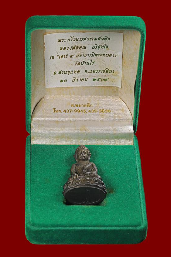 รูปหล่ออุดกริ่ง หลวงพ่อทวด รุ่นพิเศษ 25 ปี มอ. หลวงพ่อคูณ วัดบ้านไร่ ปลุกเสก ปี 2537 พิมพ์เล็ก (มีกล่อง) เคาะเดียว |