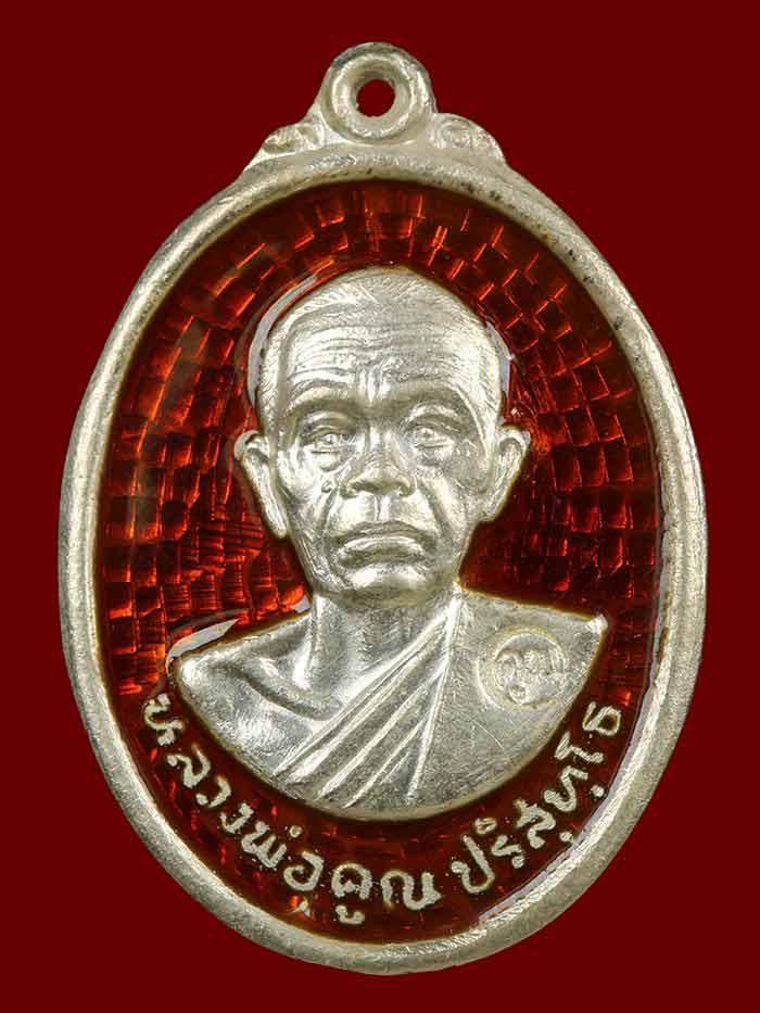 วัดใจ เหรียญรับเสด็จ หลวงพ่อคูณ วัดบ้านไร่ เนื้อเงินลงยาสีแดง ปี2536 |