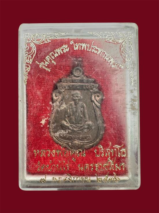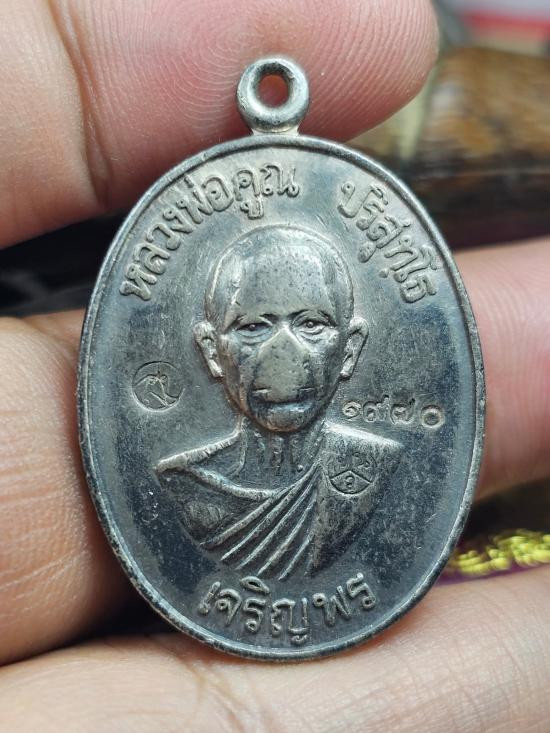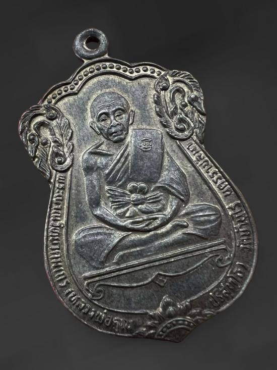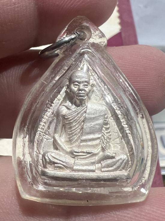 หลวงพ่อคูณ รูปเหมือนใบโพธิ์ รุ่นแรก เบอร์ 15 เนื้อเงิน ปี36 เลี่ยมกันน้ำพร้อมกล่อง |