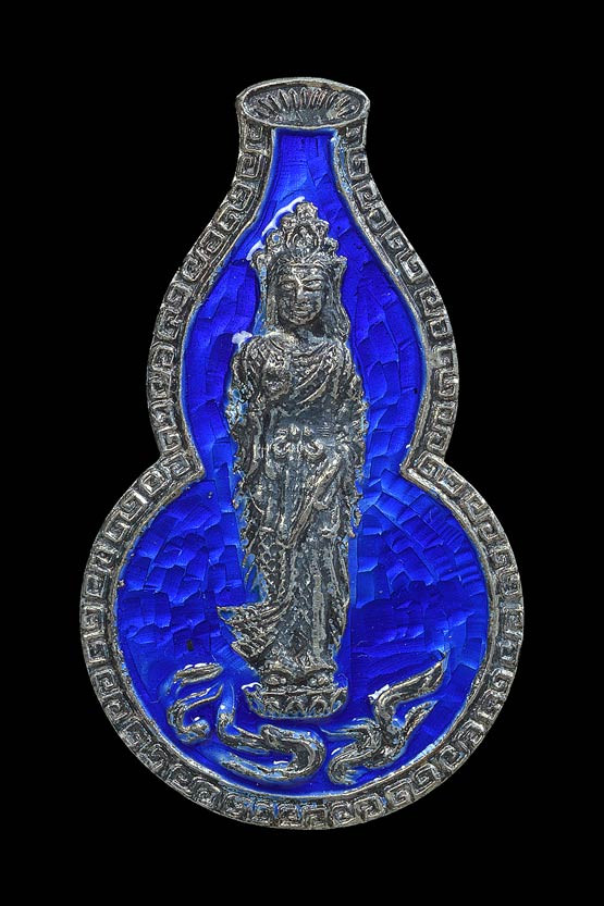 รูปหล่อเหมือนนั่งสมาธิ รุ่น สารพัดนึก ( เนื้อซิลิก้าใส บรรจุตะกรุดทองคำฝังท้องแขน ) หมายเลข 969 พ.ศ.2536 ( กล่องเดิม ) จัดสร้าง 999 องค์ |