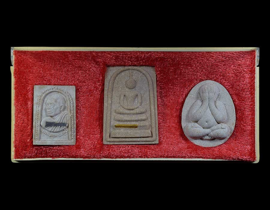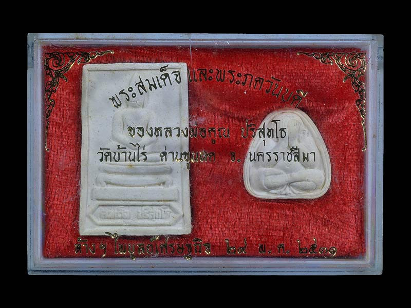 พระสมเด็จ + พระสมเด็จจันทร์ลอย เนื้อผง ( ผสมผงแร่บางไผ่ ) วัดนครอินทร์ จ.นนทบุรี ปลุกเสกโดย หลวงพ่อคูณ พ.ศ.2537 ( กล่องเดิม , รับพระ 2 องค์ ) |