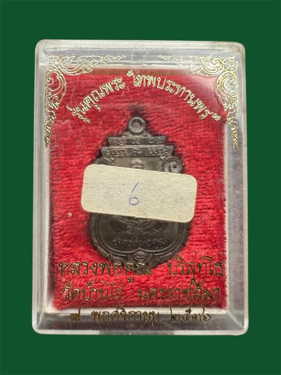 เหรียญนั่งพานหลวงพ่อคูณ วัดบ้านไร่ รุ่นนั่งพานชนะมาร เนื้อทองแดง ปี 2537 จ.นครราชสีมา หมายเลข 18455 พร้อมบัตร |