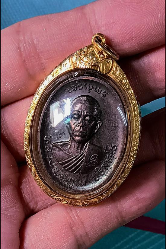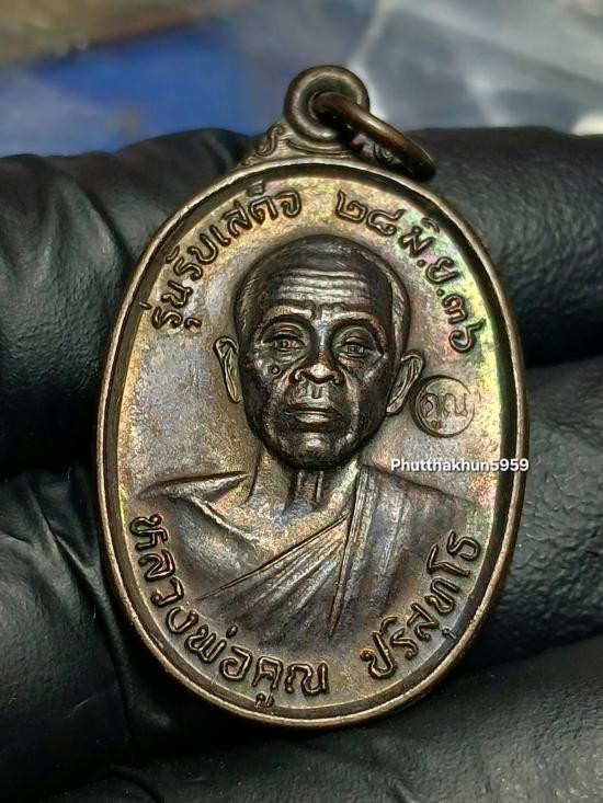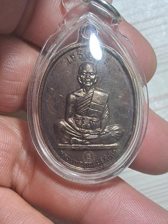 เหรียญหลวงพ่อคูณ วัดบ้านไร่ รุ่นเทพประทานพร พิมพ์รูปไข่ เนื้อทองฝาบาตร ปี 2536 จ.นครราชสีมา มีซองเดิม |