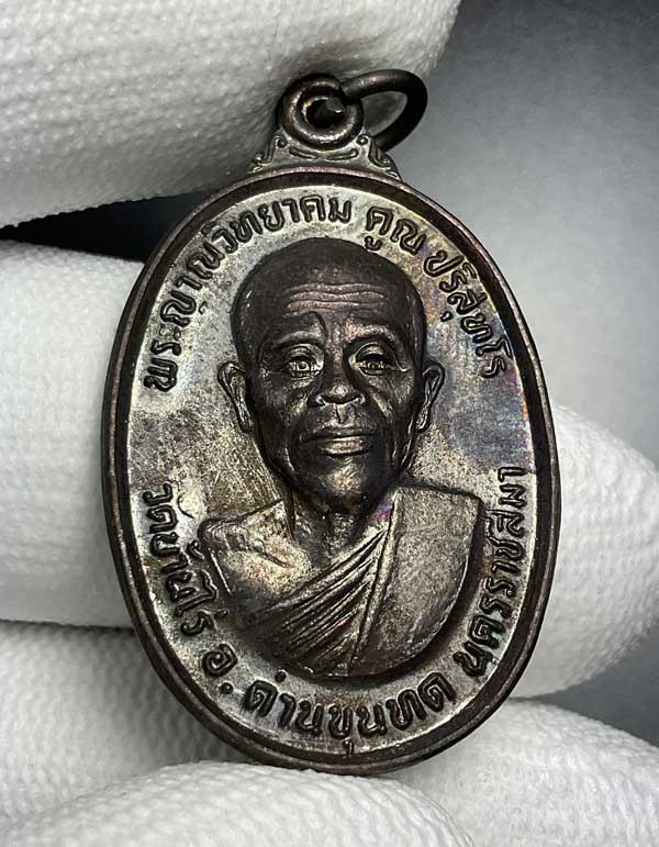 เหรียญข้าวหลามตัดหลวงพ่อคูณ รุ่นฉลองกึ่งศตวรรษ ธนาคารกรุงเทพ เนื้อรมดำรุ้ง ปี 2537 |