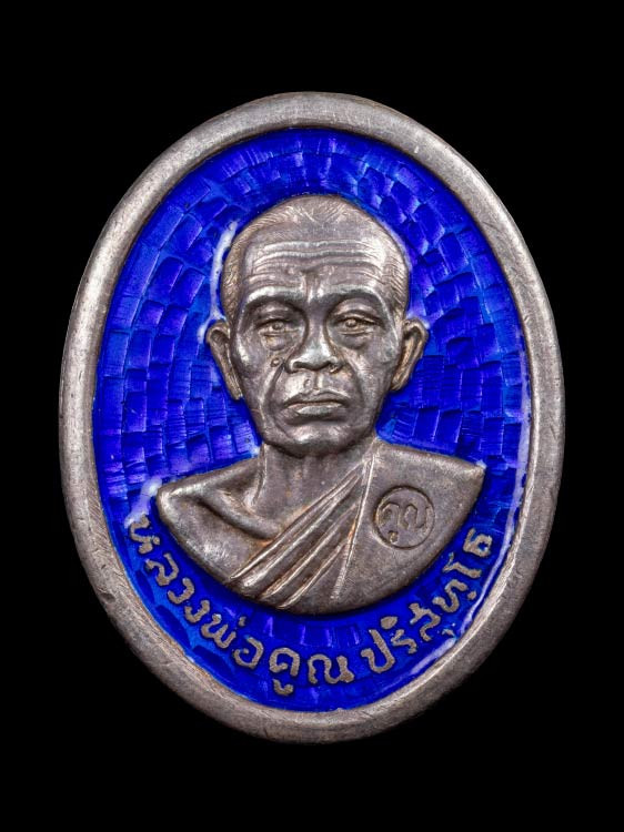 เหรียญป่าตาลเนื้อเงินลงยาหลวงพ่อคูณปี 2536 สภาพสวยด้านหลังมีรอยจานอักขระหลวงพ่อคูณ |