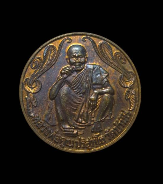 เหรียญนั่งพานหลวงพ่อคูณ วัดบ้านคลอง เนื้อทองแดง ปี 2537 มีกล่องเดิม |