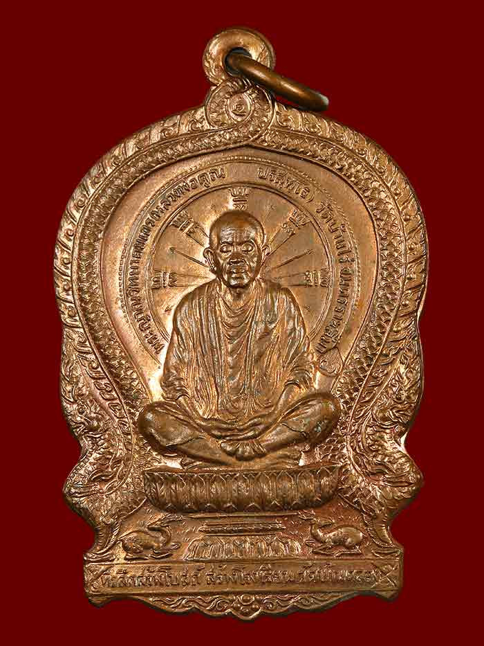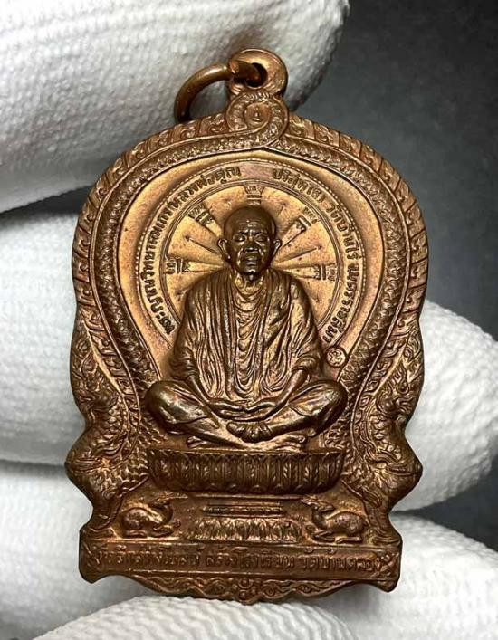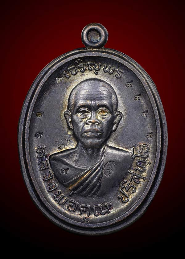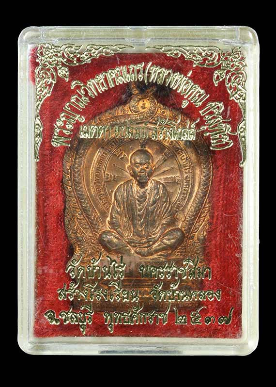 เหรียญนั่งพาน หลวงพ่อคูณ วัดบ้านไร่ สร้างโบสถ์วัดบ้านคลอง ชลบุรี เนื้อทองแดง รุ่นเมตตาอุปถัมถ์ พ.ศ.๒๕๓๗ |