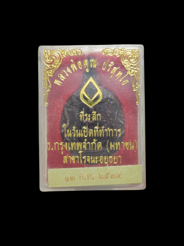 เหรียญหลวงพ่อคูณ ปริสุทโธ วัดบ้านไร่ รุ่นสรงน้ำ 2539 นครราชสีมา แจกที่ระลึก ในวันเปิดที่ทำการ ธ.กรุงเทพจำกัด (มหาชน) สาขาโรจนะ อยุธยา |