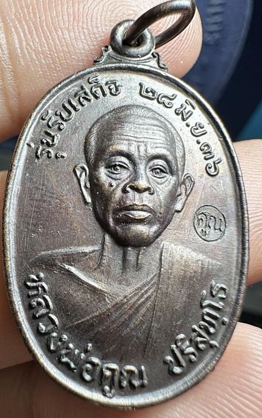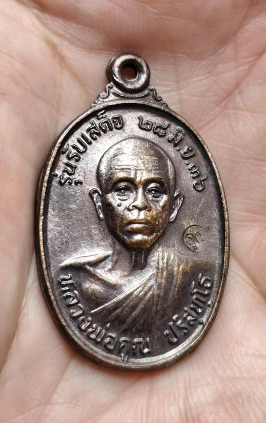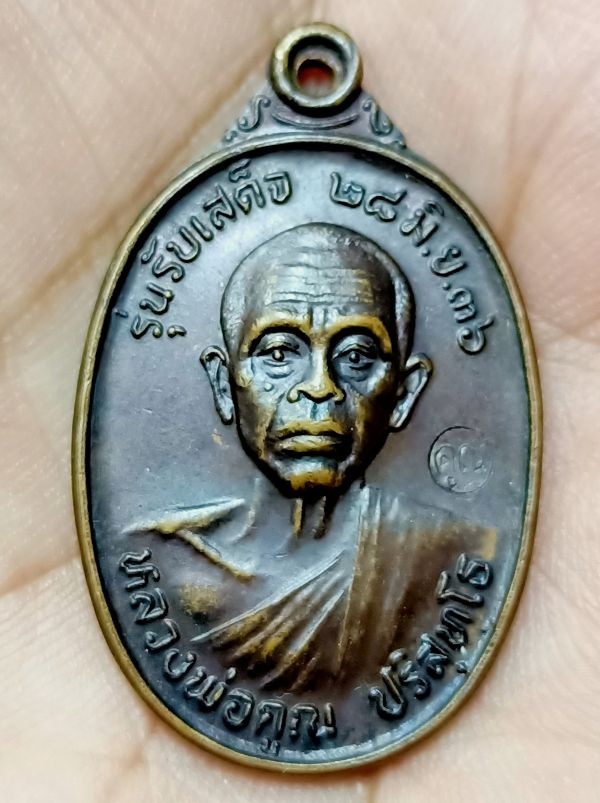 หลวงพ่อคูณ ปริสุทโธ รุ่นรับเสด็จ ปี36 บล็อกทองคำ อ แตก ปี36 เนื้อทองแดงผิวไฟ ตอกโค้ตชัดเจนครับ |