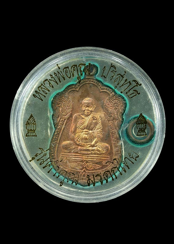 พระบูชาหลวงพ่อคูณ ฉลองอายุครบ 74 ปี ปี 2539 ฐานหน้าตัก 5นิ้ว ด้านหน้าแกะฝังลงในเนื้อเป็นอักขระ ตัว มิ และอักษรครบรอบ 74 ปี ใต้ฐานบรรจุ ตลับสีผึ้งบรรจุ ตระกุดทองคำ เส้นเกศาหลวงพ่อ เส้นยาสูบเละแถบจีวร |