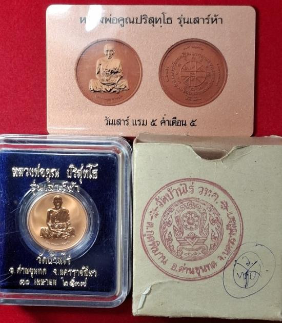 เหรียญนั่งพานหลวงพ่อคูณ วัดบ้านคลอง เนื้อทองแดง พร้อมกล่อง no.1 |