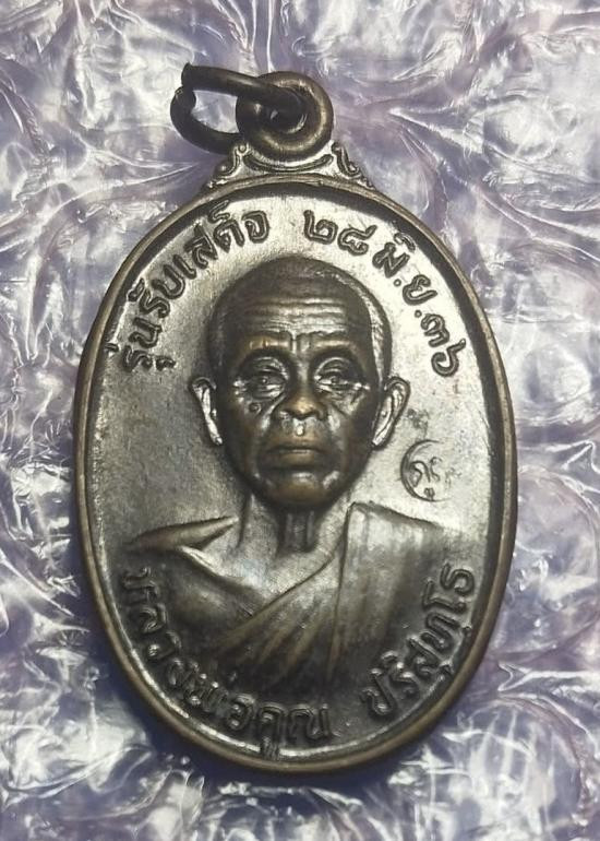 (เคาะเดียวแดง) เหรียญหลวงพ่อคุณ รุ่นรับเสด็จปี36 ผิวไฟ บล็อคหลังยาดม ช ขีด |
