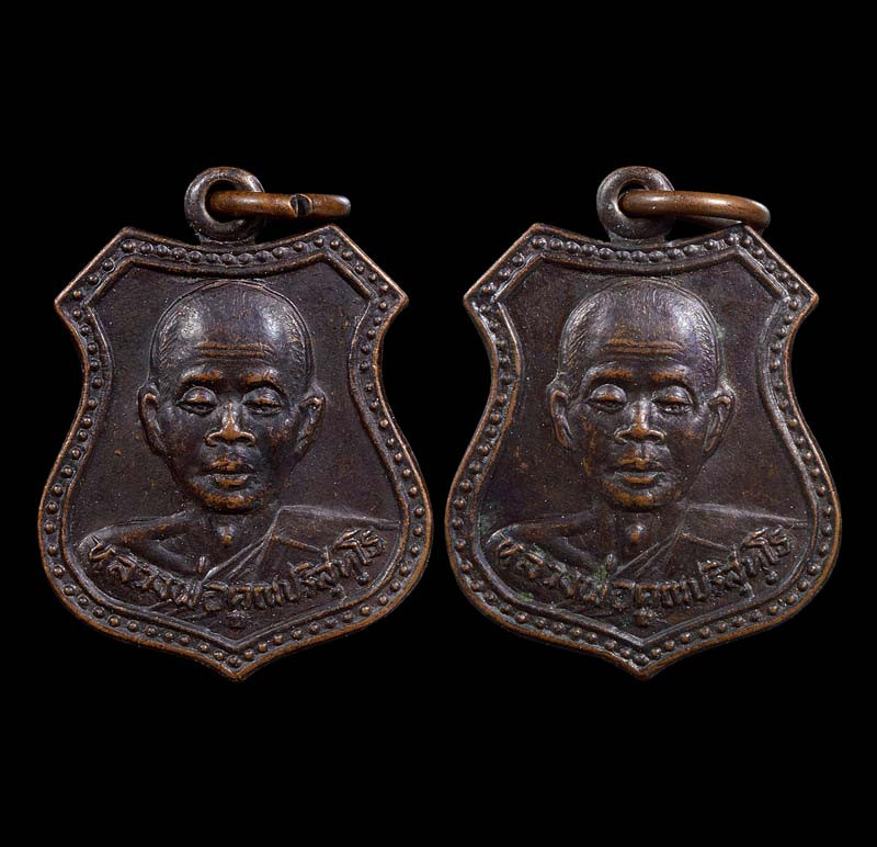 เหรียญเล็กรูปเหมือนหันข้าง ( พิมพ์อาร์ม และ พิมพ์เม็ดแตง ) เ นื้อกะไหล่ทอง ลงยาแดง พ.ศ.2535 ( รับพระ 2 เหรียญ ) |
