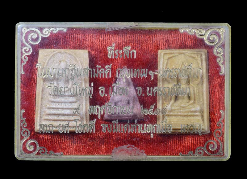 พระผงชุด 3 องค์ วัดยางใหญ่ ( พระพุทธชินราช , พระสมเด็จฐาน 5 ชั้น , พระพิมพ์พระนางพญา ) ปลุกเสกโดย หลวงพ่อคูณ ( เนื้อผง ) พ.ศ.2512 ( กล่องบรรจุที่ระลึกในงานกฐินสามัคคี กรุงเทพฯ - นครราชสีมา ปี 2518 )*2 |