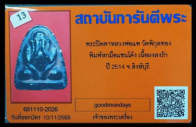 ปิดตารุ่นแรกหลวงพ่อแพ วัดพิกุลทอง พร้อมบัตรรับรอง |