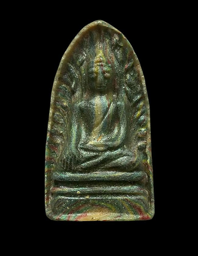 สมเด็จซุ้มสิงห์หลวงพ่อแพ 2519 นวะโลหะ มีจาร ด้านหลัง เลข 1261 เคาะเเรก |