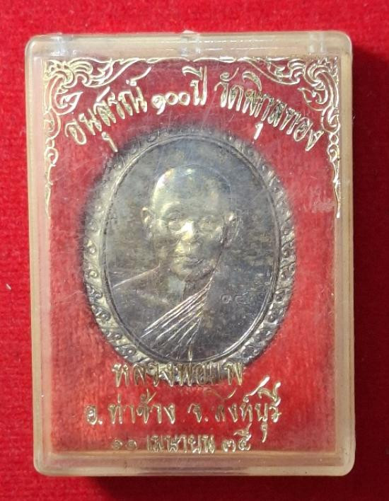 เหรียญหลวงพ่อแพ วัดพิกุลทอง จ.สิงห์บุรี ปี2535 (อนุสรณ์100ปี เนื้อเงิน หายาก สภาพสวย นิยม กล่องเดิม) |