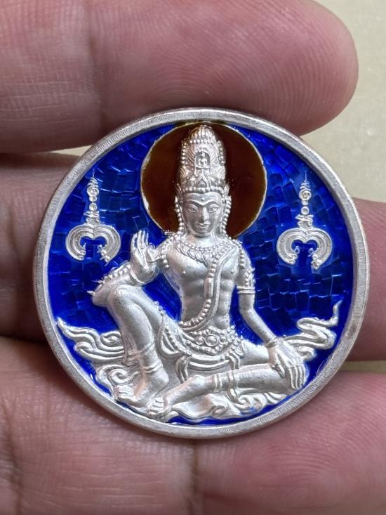 เหรียญท้าวมหาพรหมบันดาลโชค(เนื้อเงิน หมายเลข ๓๓๑๐)หลวงพ่อเพี้ยน วัดเกริ่นกฐิน จ.ลพบุรี ปี2555 |