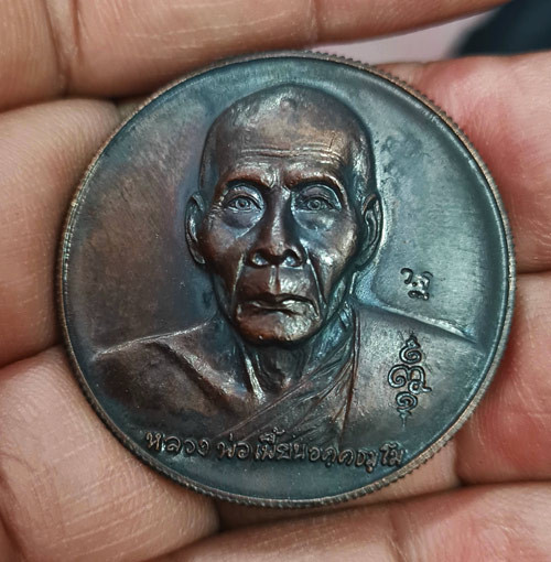 เหรียญหลวงพ่อแพ วัดพิกุลทอง จังหวัดสิงห์บุรี รุ่นที่ระลึกงานทำบุญอายุครบ 70 ปี สร้างในปี พ.ศ. 2517 |