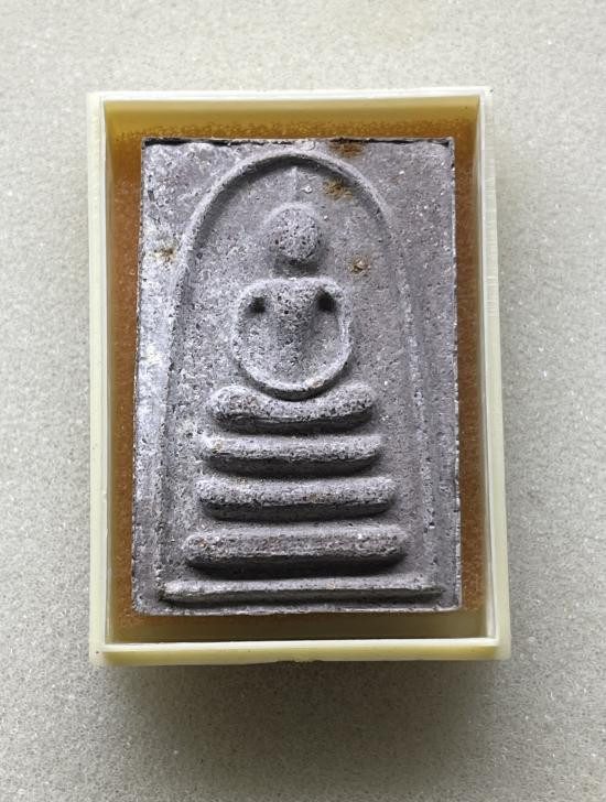พระสมเด็จ ปั๊มหลังยันต์นะโมพุทธายะ หลวงพ่อแพ วัดพิกุลทอง เนื้อทองแดง ปี 2514 |