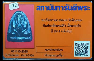 สมเด็จหลวงพ่อแพ พิมพ์ฐานสิงห์ผงลาย 15ปี + บัตรจี |