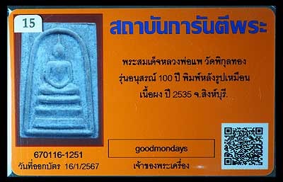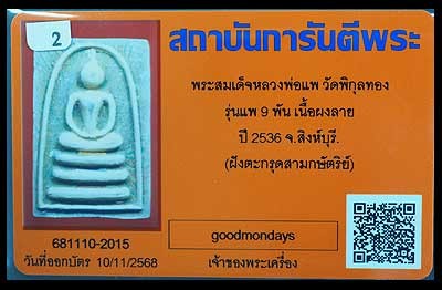 พระสมเด็จคะแนนฐานเก้าชั้น หลวงพ่อแพ เนื้อผง ปี2515 วัดพิกุลทอง จ.สิงห์บุรี พร้อมบัตรรับรองครับ |