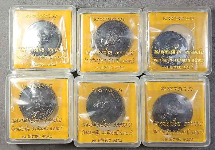 เหรียญมหาลาภ หลวงพ่อเพี้ยน วัดเกริ่นกฐิน จ.ลพบุรี พ.ศ.2555 6 เหรียญ กล่องเดิม สวยทุกเหรียญ |