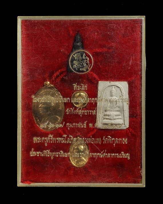 สมเด็จแพ 9 พัน เนื้อลายรัศมี ปี 2536 หลวงพ่อแพ วัดพิกุลทอง สิงห์บุรี 8 องค์ สภาพสวยสมบูรณ์พร้อมกล่องเดิม |