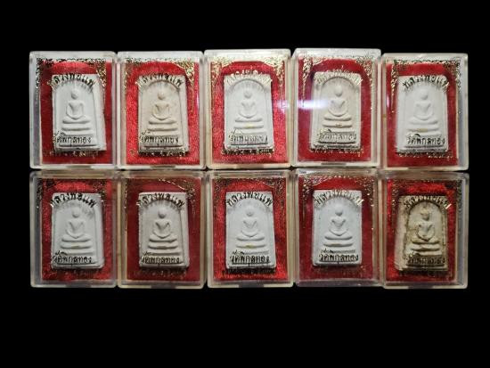 สมเด็จแพ 9 พัน เนื้อผงเกศร คัดสวย ปี 2536 หลวงพ่อแพ วัดพิกุลทอง สิงห์บุรี 10 องค์ สภาพสวยสมบูรณ์พร้อมกล่องเดิม |