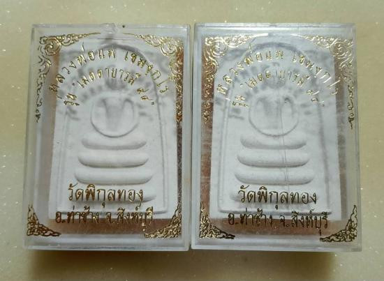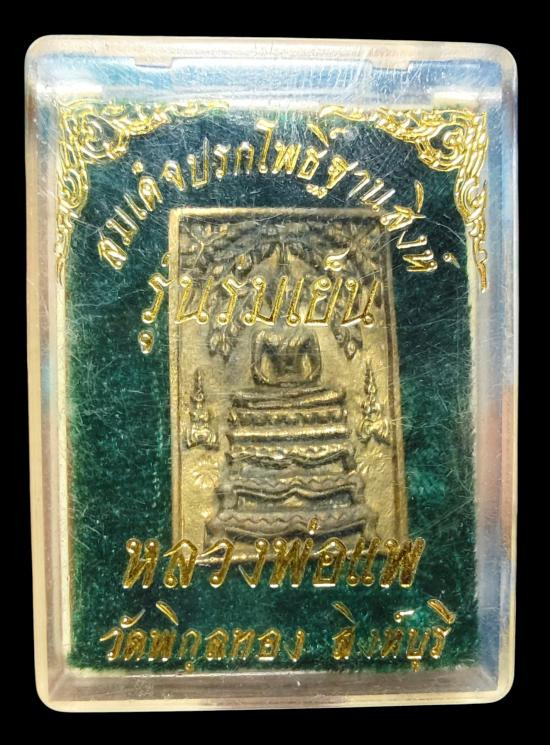 100# พระสมเด็จฐานสิงห์ หลวงพ่อแพ วัดพิกุลทอง ปี 2539 เนื้อผงลาย จ.สิงห์บุรี ตะกรุดทองคำ-เงิน-นาค มีกล่อง |
