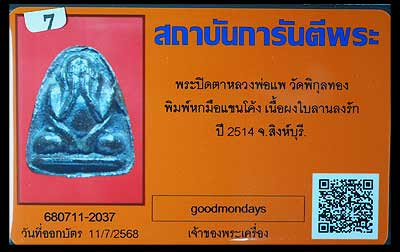 หลวงพ่อแพ วัดพิกุลทอง พ.ศ.2513 นวโลหะ สภาพสวยตามรูป พร้อมบัตรการันตีรับรอง |