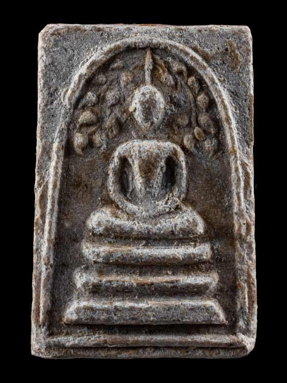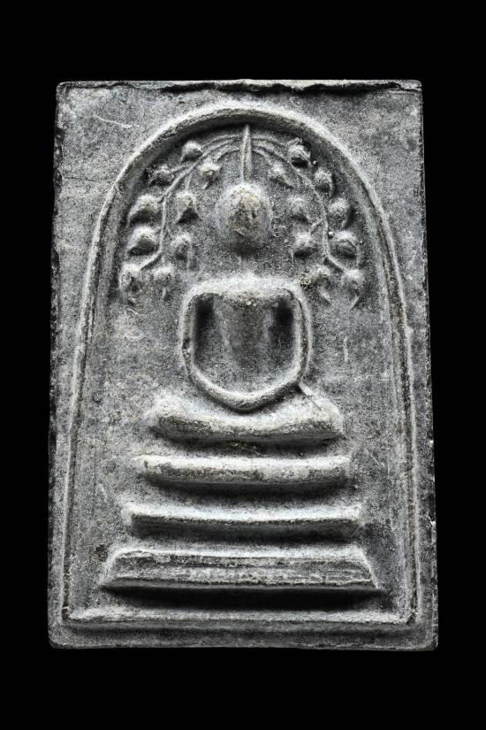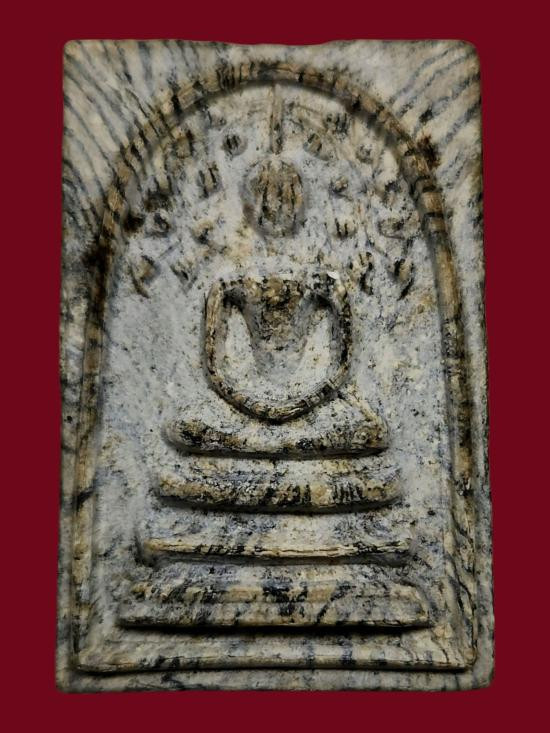 859.........วัดใจ........พระสมเด็จ หลวงพ่อแพ วัดพิกุลทอง จ.สิงห์บุรี ปี 2514 พิมพ์ปรกโพธิ์ เนื้อลาย มีชิ้นทองด้านหน้า .+กล่องเดิม |