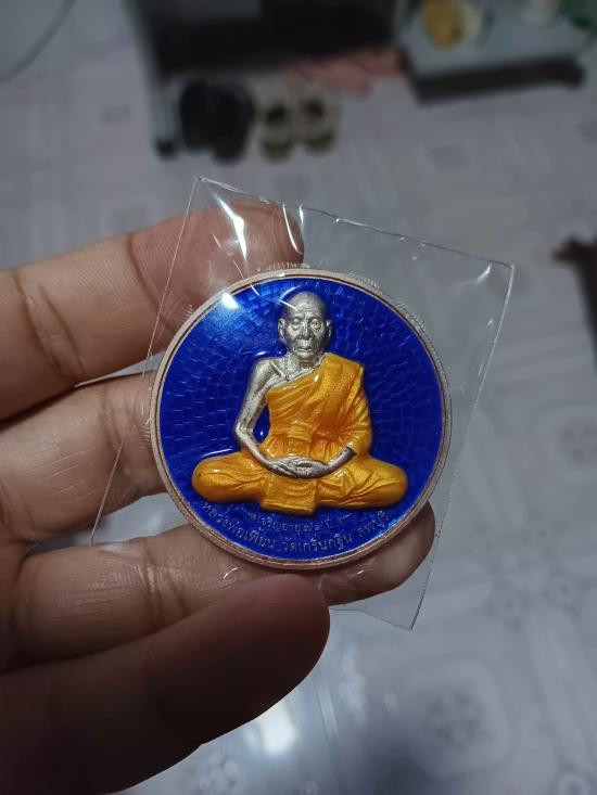 เหรียญมหาอำนาจ มหาบารมี หลวงพ่อเพี้ยน เนื้อเงินลงยาสีน้ำเงิน วัดเกริ่นกฐิน จ.ลพบุรี ปี48 |