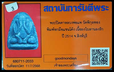 "ทองคำ ตะกรุดทองคำ บน" (หลวงพ่อแพ วัดพิกุลทอง) สมเด็จ ไม่ทราบรุ่น ขายวัดใจไปทุกรายการ |