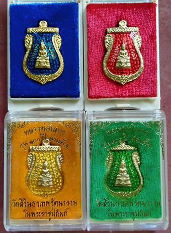 A2112.ชุดเซ็ต 4 องค์ เนื้อผง หลวงพ่อพระพุทธโสธร เนื้อเหลือง เคาะเดียวเเดง |