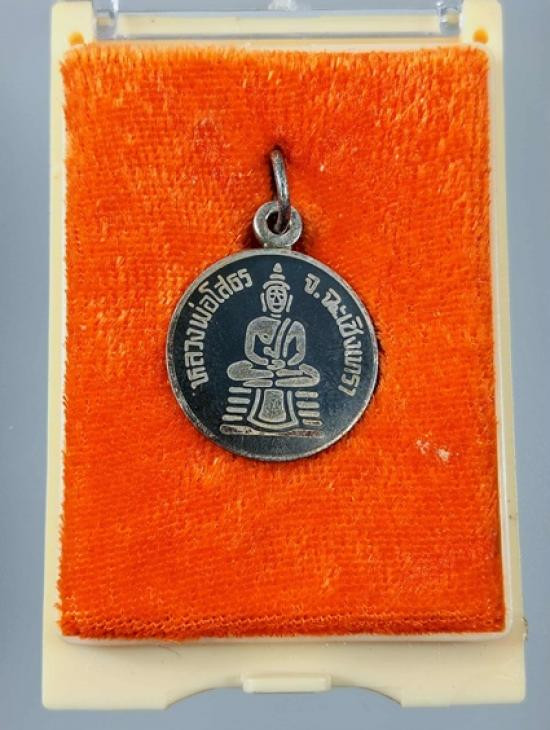 เหรียญกลมเล็กหลวงพ่อโสธร รุ่น สร้างโรงพยาบาล เงินลงถม |