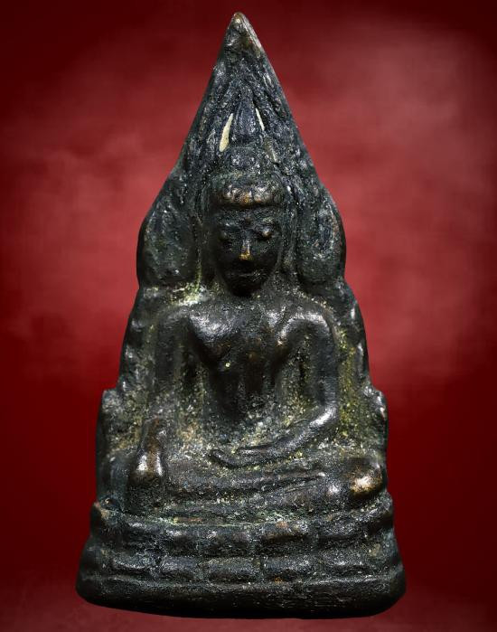 พระพุทธชินราชอินโดจีน พิมพ์สังฆาฎิสั้น เสาร์ห้าหน้าเล็กแขนยาว มีโค้ด เลี่ยมเงินยกซุ้มใบใหญ่ พร้อมบัตรรับรอง |