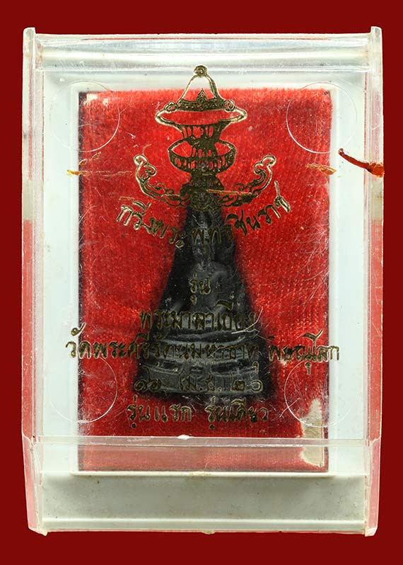 ((วัดใจเคาะเดียวแดง)) พระพุทธชินราชทรงใบเสมา (หล่อโบราณ/เหวี่ยงมือ) รุ่น-มงคลโภคทรัพย์ ) (พุทธาภิเษก วัดพระศรีรัตนมหาธาตุ ๒๕ มิถุนายน พ.ศ.๒๕๔๐) ( เนื้อ-นวโลหะ หมายเลข 1199 ) พร้อมกล่องเดิม |