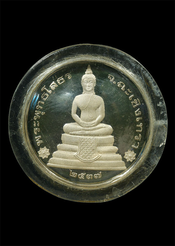 พระพุทธโสธร รุ่น 80 ปีกรมตำรวจ เนื้อเงินพ่นทราย ปี 2538 |