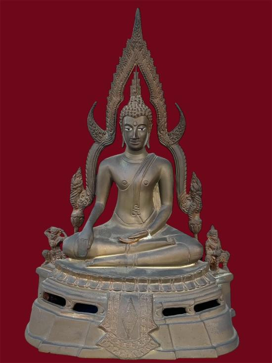 พระพุทธชินราชหล่อบรรจุเม็ดกริ่ง วัดพระศรีรัตนมหาธาตุ จ.พิษณุโลก รุ่นปฏิสังขรณ์ 2 พ.ศ.2534 พิมพ์ใหญ่ เนื้อนวะโลหะ พร้อมบัตรการันตีพระ |