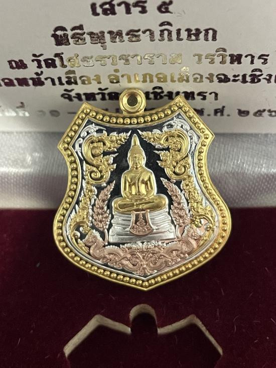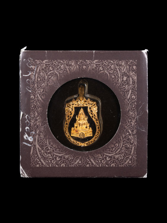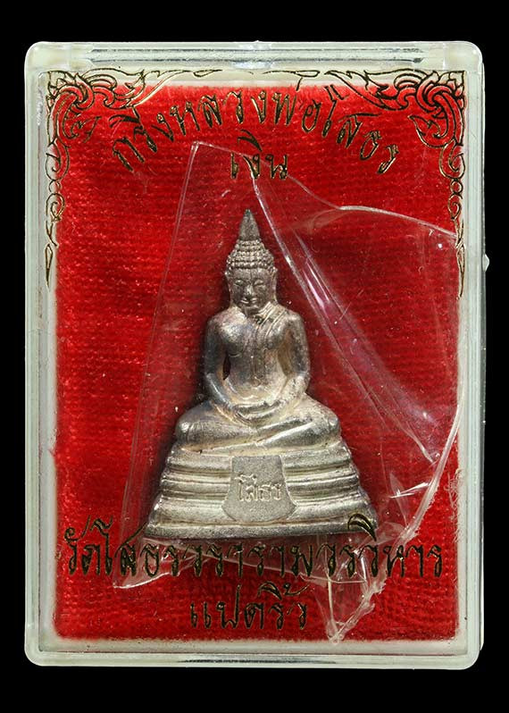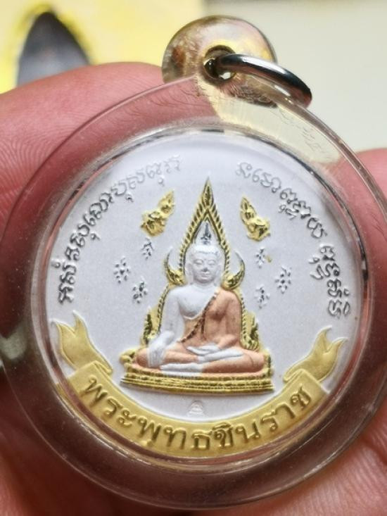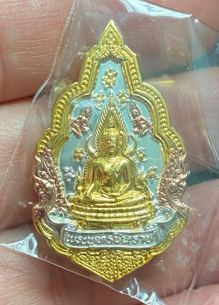 พระพุทธชินราช ภปร. เนื้อเงินชุบ 3 กษัตริย์ โครงการแผ่นดินเกิด ปี2551ใต้ฐานอุดผงจิตลดา พิมพ์เล็ก 1/4 นิ้วใต้ฐานตอกโค๊ตและหมายเลข |