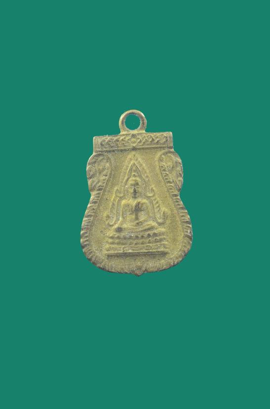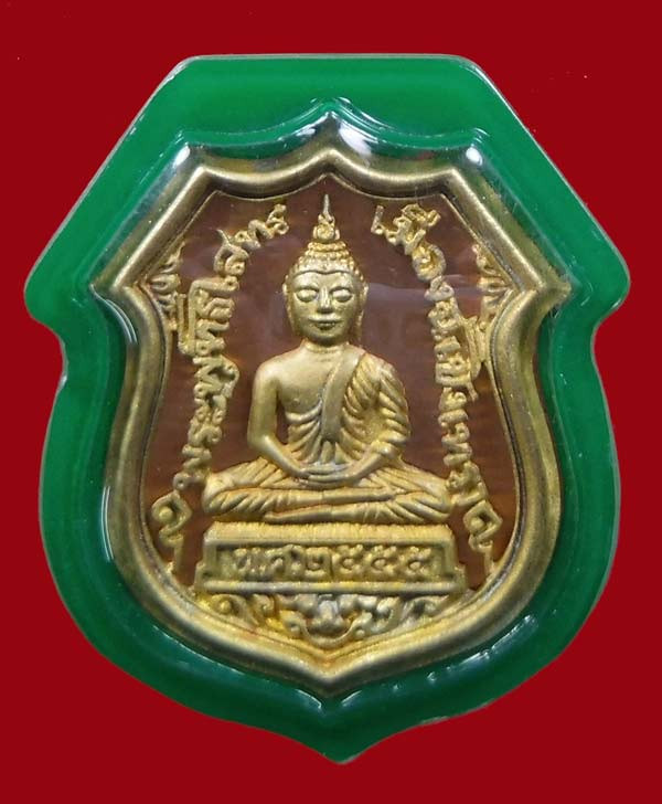 ( เลข 1659 ) เหรียญโล่ห์พระพุทธชินราช หลังยันต์วิเศษอกเลาโภคทรัพย์ เนื้อทองทิพย์ลงยาสีเขียว เหนี่ยวทรัพย์ รุ่น สมโภชพระพุทธชินราช ครบ ๖๖๖ ปี |
