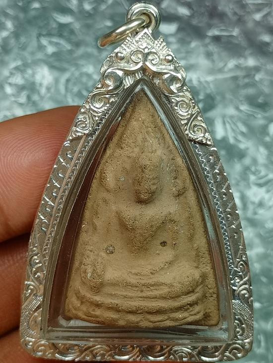 พระพุทธชินราชห้าเหลี่ยม หลวงปู่เผือก วัดกิ่งแก้ว รุ่นสร้างเจดีย์ ปี2496 จ.สมุทรปราการ สวยเดิมๆ พร้อมเลี่ยมเงินงานมืออย่างดี |