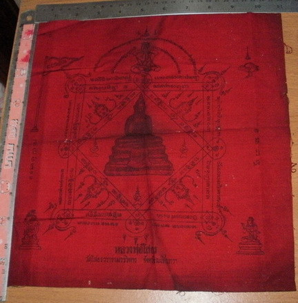 *** ผ้ายันต์หลวงพ่อโสธร ปี14 สีแดง ขนาด 11" x 11.5" สวยและหายาก วัดใจเคาะเดียว *** |