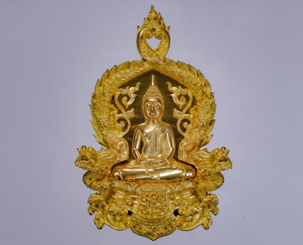 เหรียญพระพุทธชินราชหลังพานพระศรีและอกเลา ปี 2496 เนื้อกะไหล่ทอง วัดพระศรีฯ จ.พิษณุโลก |