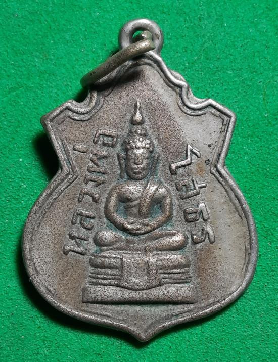 เหรียญพระพุทธชินราช วัดสุทัศนฯ รุ่นอินโดจีน พิมพ์สระอะขีดหลังเข็มกลัด เนื้อกะไหล่เงิน ปี 2485 จ.กรุงเทพฯ |