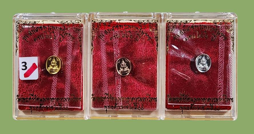 (ชุด 3 K จำนวน 3 องค์) เหรียญเม็ดยา พระพุทธชินราช หลังอกเลาโภคทรัพย์ เนื้อชนวนชุบสามกษัตริย์ ชุบเงิน ทอง นาค พร้อมกล่องเดิมครับ รุ่น สมโภชพระพุทธชินราช ครบ ๖๖๖ ปี -ุ3 |