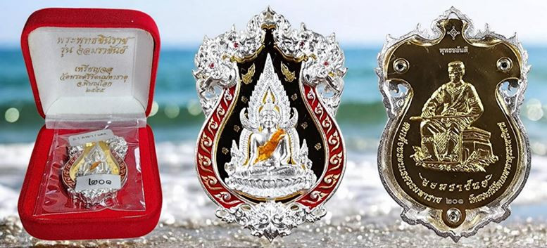 เหรียญหล่อฉลุพระพุทธชินราช รุ่น จอมราชันย์ วัดพระศรีรัตนมหาธาตุฯ จ.พิษณุโลก ปี 2555 - เนื้อเงินลงยาราชาวดี สีแดง(ชุดพุทธชยันตรี) หมายเลข 201 สภาพสวยกล่องพร้อมครับ -:ซีลเดิมๆครับ |