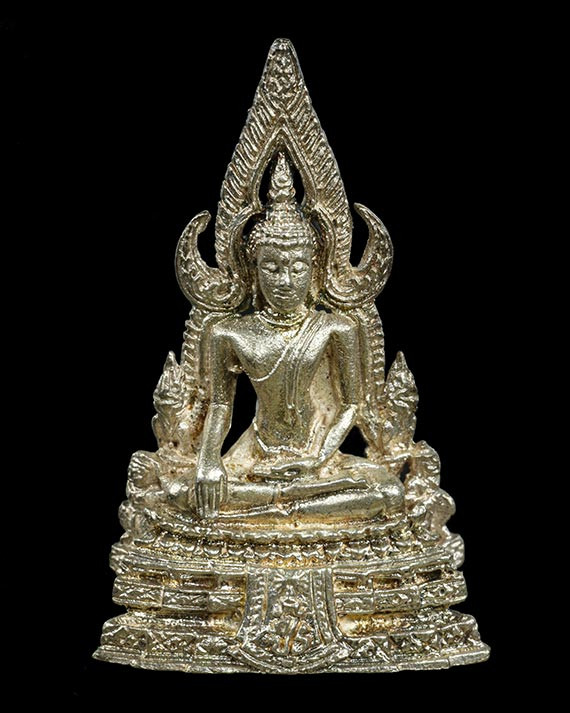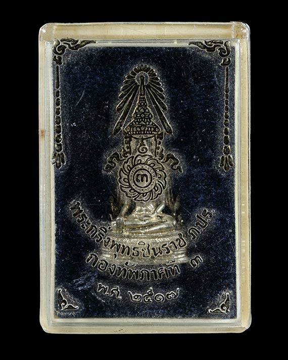 เลี่ยมเงินพร้อมใช้ พระพุทธชินราช อินโดจีน พิมพ์C มีโค๊ต ตอกเต็มใบ วัดสุทัศน์ ปี2485 |