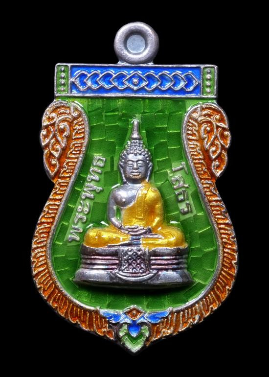 เหรียญหลวงพ่อโสธร เนื้อเงินลงยาราชาวดีสีเขียว ปี57 มีโค้ดเลข 9 แดงเคาะแรก |